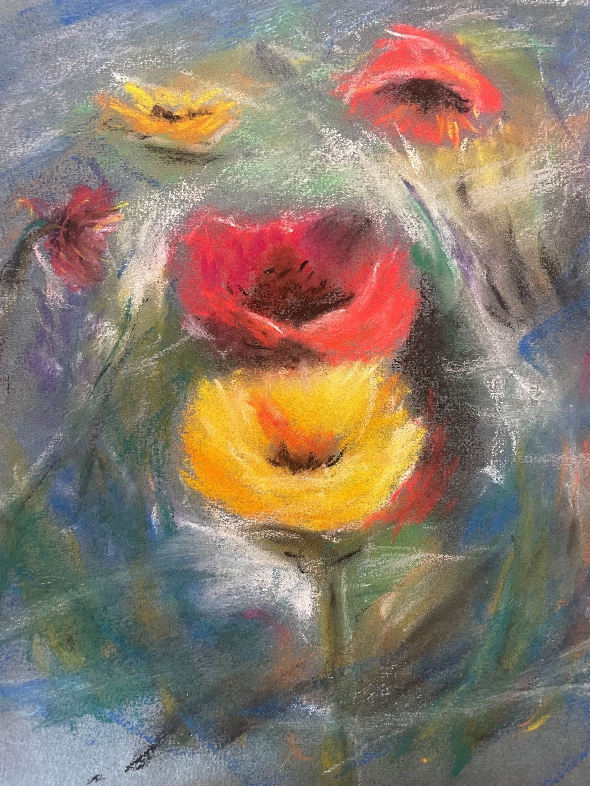 Ihr erlernt und vertieft das Arbeiten mit Pastellkreiden, ihr lernt neue Techniken kennen und gestaltet ein Frühlingsbild.